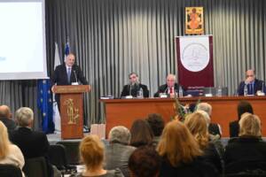 Στην εφετινή διεθνή εκδήλωση, που θα πραγματοποιηθεί στο Πανεπιστήμιο της Καλαβρίας (Νάπολη – Ιταλίας) τη Δευτέρα, 9 Φεβρουαρίου 2026, με τη συμμετοχή πολλών ελληνικών συλλογικοτήτων και γλωσσολόγων, το Κ.Ε.Μ.Ε. «Ευγένιος Τζιμογιάννης» θα εκπροσωπηθεί από τα εξέχοντα μέλη του Διοικητικού του Συμβουλίου κ. Κωνσταντίνο Κυριακού και κα Γεωργία Τζέμη – Τζιμογιάννη, τους οποίους θα συνοδεύει ο άμισθος επιστημονικός μας συνεργάτης Δημοσιογράφος Δρ Αθανάσιος Χούπης.